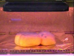 | As the oven continued to heat up, the Spooky Cat turned a crispy black. It didn't smell too bad, actually. Just like roasting a regular marshmallow at camp! |